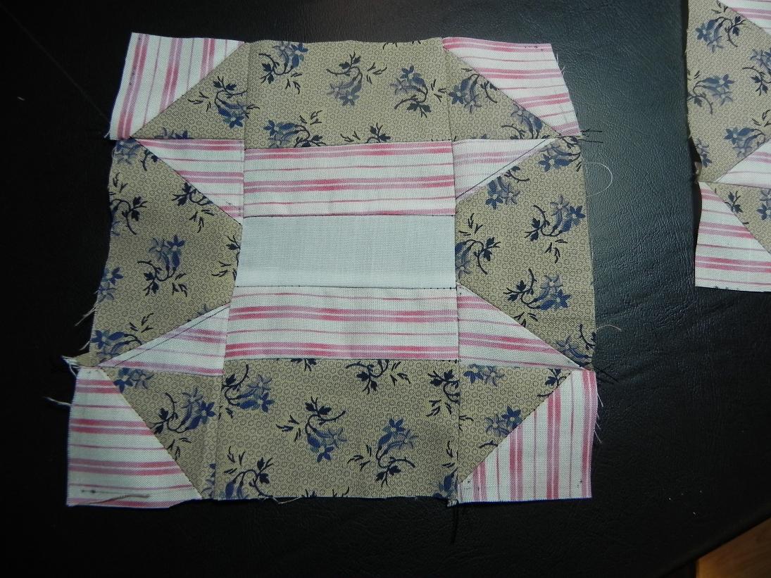Have been adding more squares to my stash , in preparation for making some quilted flats. Still winding my way throuh this book. Fascinating stuff. This square is known as "A Union of Name". Postage Stamp type of quilt square.